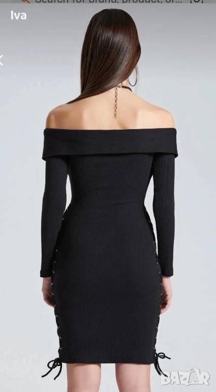 Намалена! Елегантна черна рокля с голи рамена и връзки за регулиране на дължината → Обява 52472120