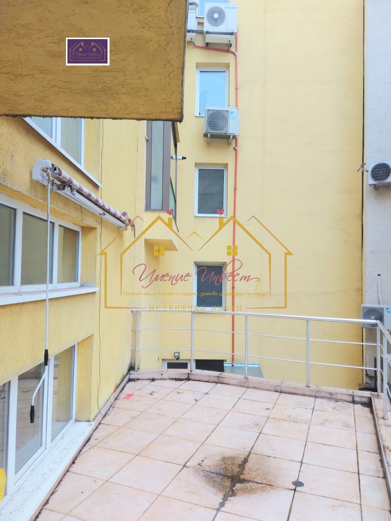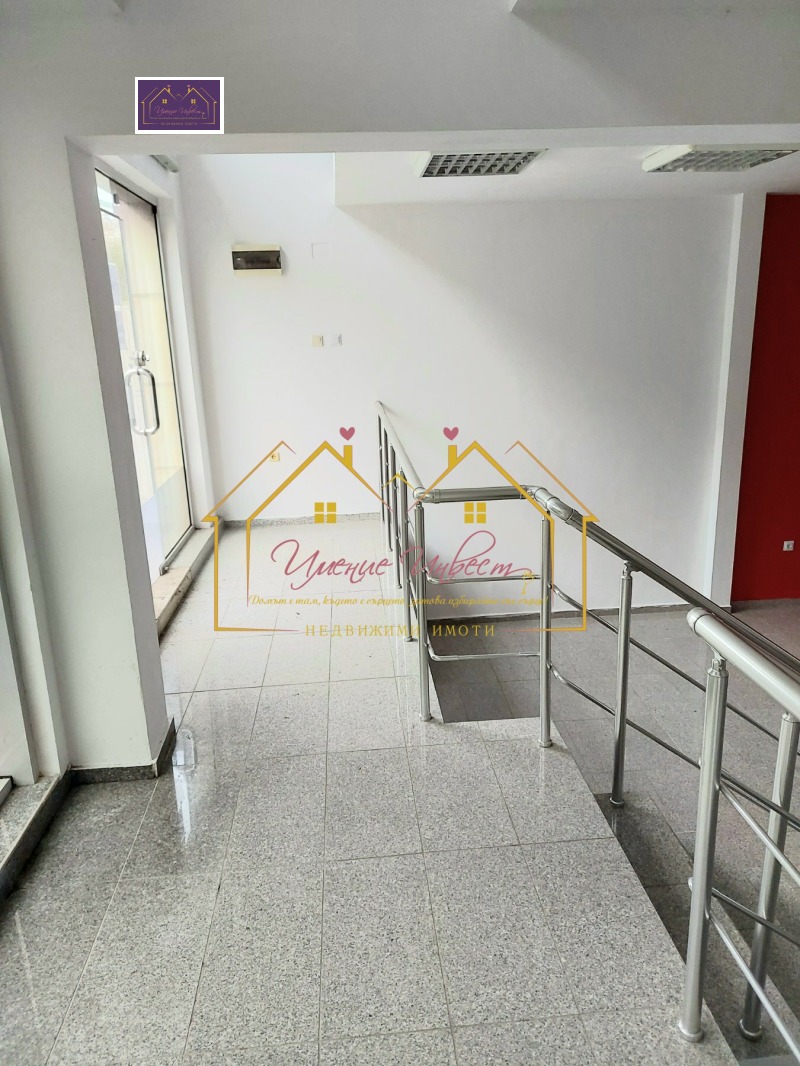 Недвижими имоти ИМЕНИЕ Инвест Ви предлага помещение под наем в центъра на Русе, в близост до Окръжна библиотека. Имотът е с обща площ от 190 кв.м., на две нива, със санитарен възел, склад и голяма тераса с тента за отдих Намира се на изключително комуникативно място с голям човекопоток и отделно голям автомобилен трафик, с висока витрина, изцяло с лице към главна улица. Представлява една търговка зала на първо ниво, санитарен възел и втора търговска зала на второ ниво. Помещението е изключително топло и светло, а отоплението е на електричество. Подходящо както за търговия, така и за офис, кантора, шоурум и други дейности. Помещението се предлага и за продажба! Цена при запитване!