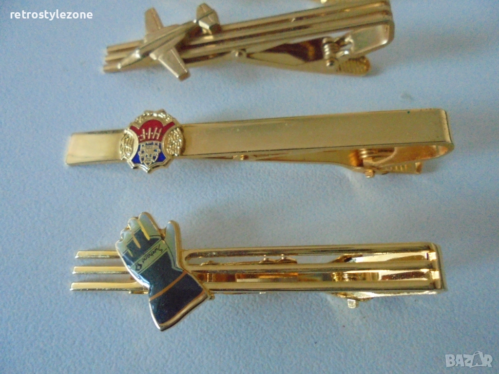 Предлагам колекция от 6 броя елегантни златисти щипки за вратовръзка, всяка с различна емблема. Подходящи както за носене, така и за колекционери.