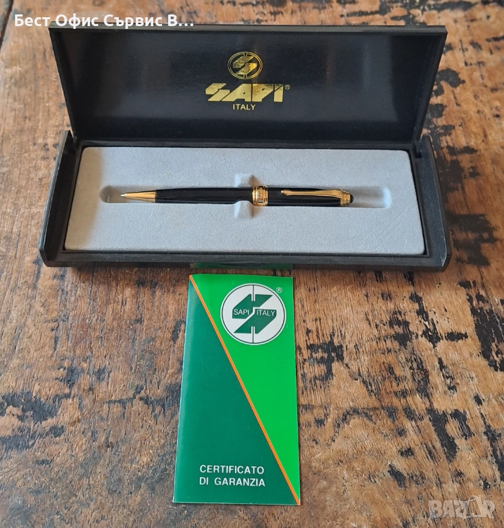 химикалка Сапи Sapi малка елегантна позлатена и черна Италия в кутия → Обява 52472225