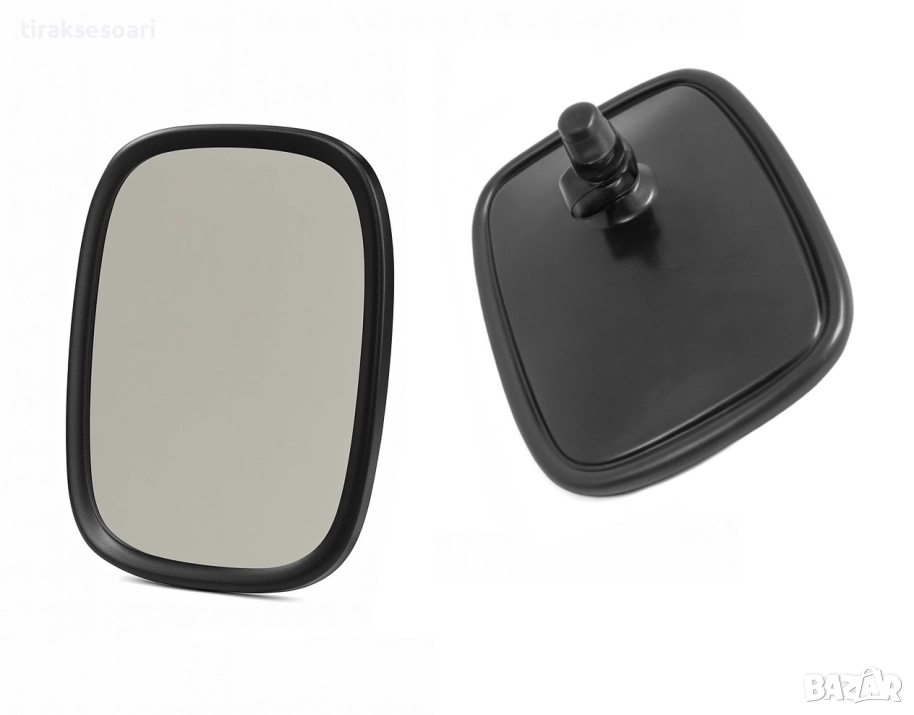 Комплект 2 броя универсални външни странични огледала 18.5x14 см, подходящи за камиони, трактори, багери, строителна техника, селскостопански машини, кемпери и други превозни средства. Огледалата могат да се монтират както отляво, така и отдясно. Изработени са от здрав пластмасов корпус и стъклено огледало. Подходящи за замяна на стари или повредени огледала. Подходящи за професионална и ежедневна употреба.