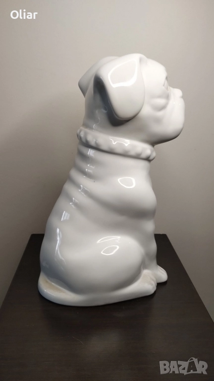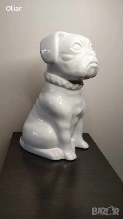 Предлагам изключителна декоративна фигурка на булдог, изработена от висококачествена керамика с луксозно гланцово покритие. Висока 25 см, тази статуетка е впечатляващ акцент, който веднага привлича погледа и придава характер на интериора.