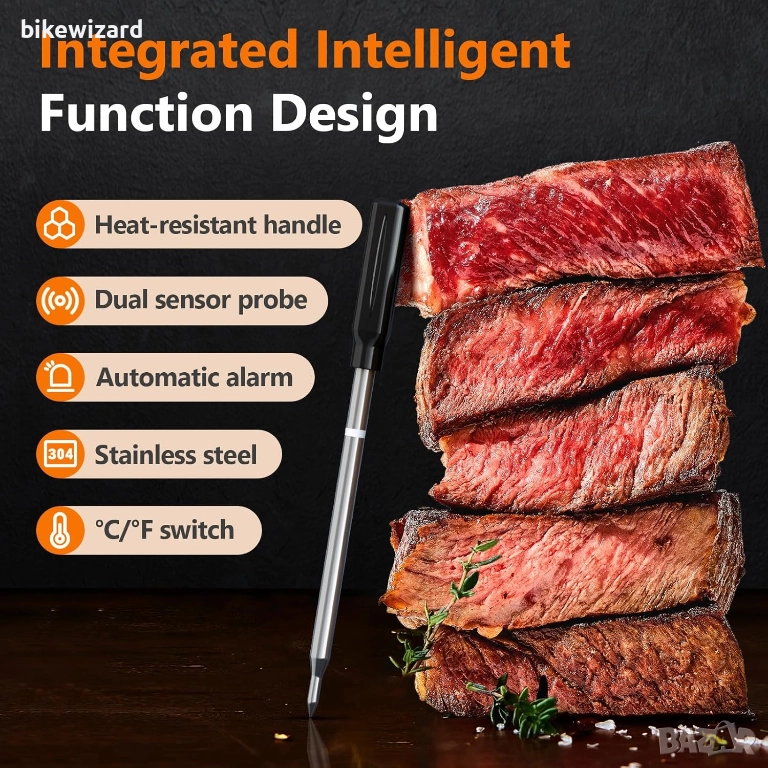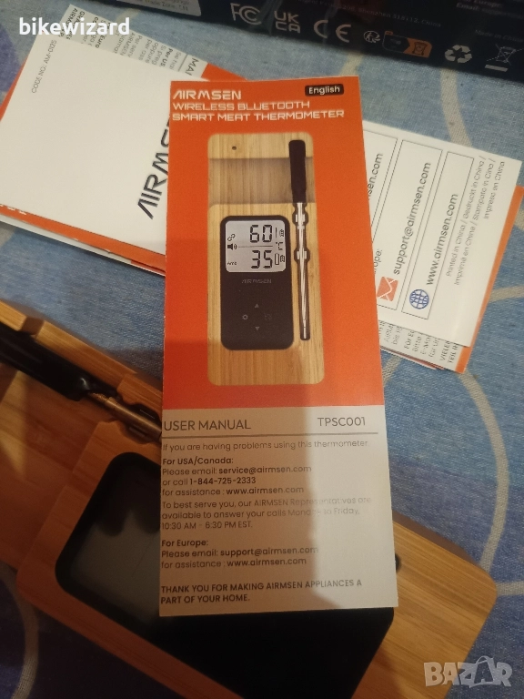 AIRMSEN Bluetooth термометър за месо с APP контрол НОВ С ТРАНСПОРТЕН ДЕФЕКТ