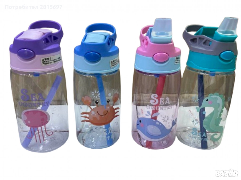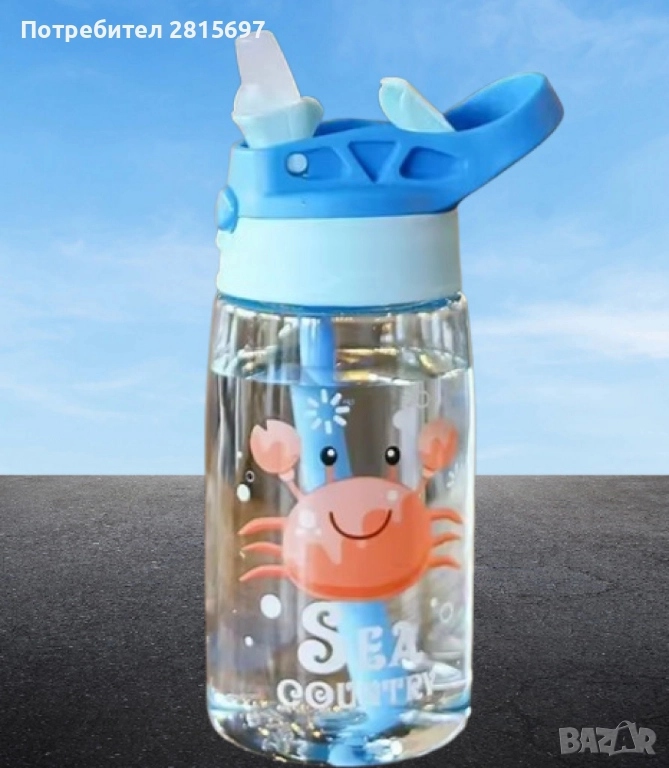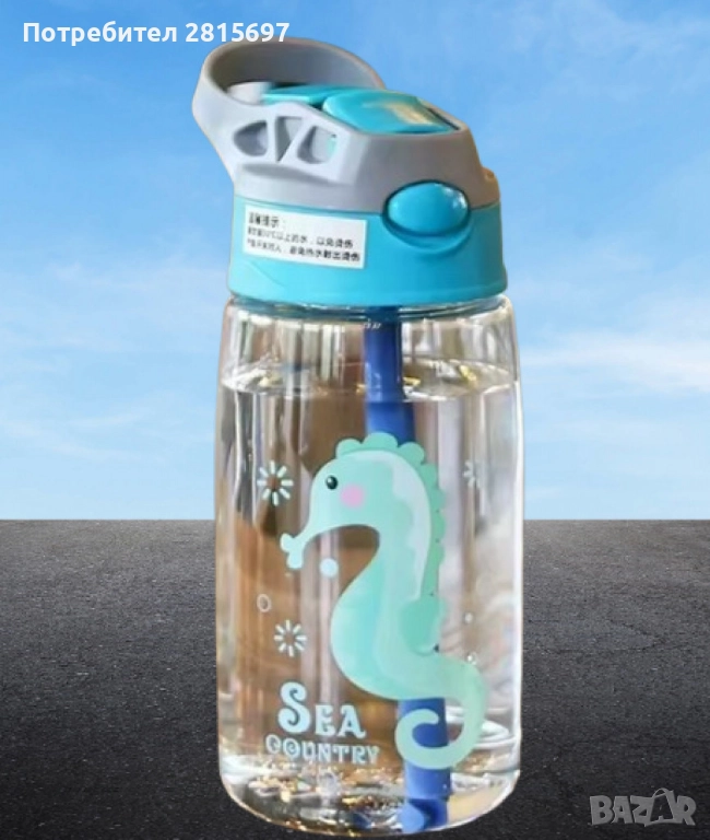 Детска бутилка за вода със сламка 480 мл. → Обява 52473252