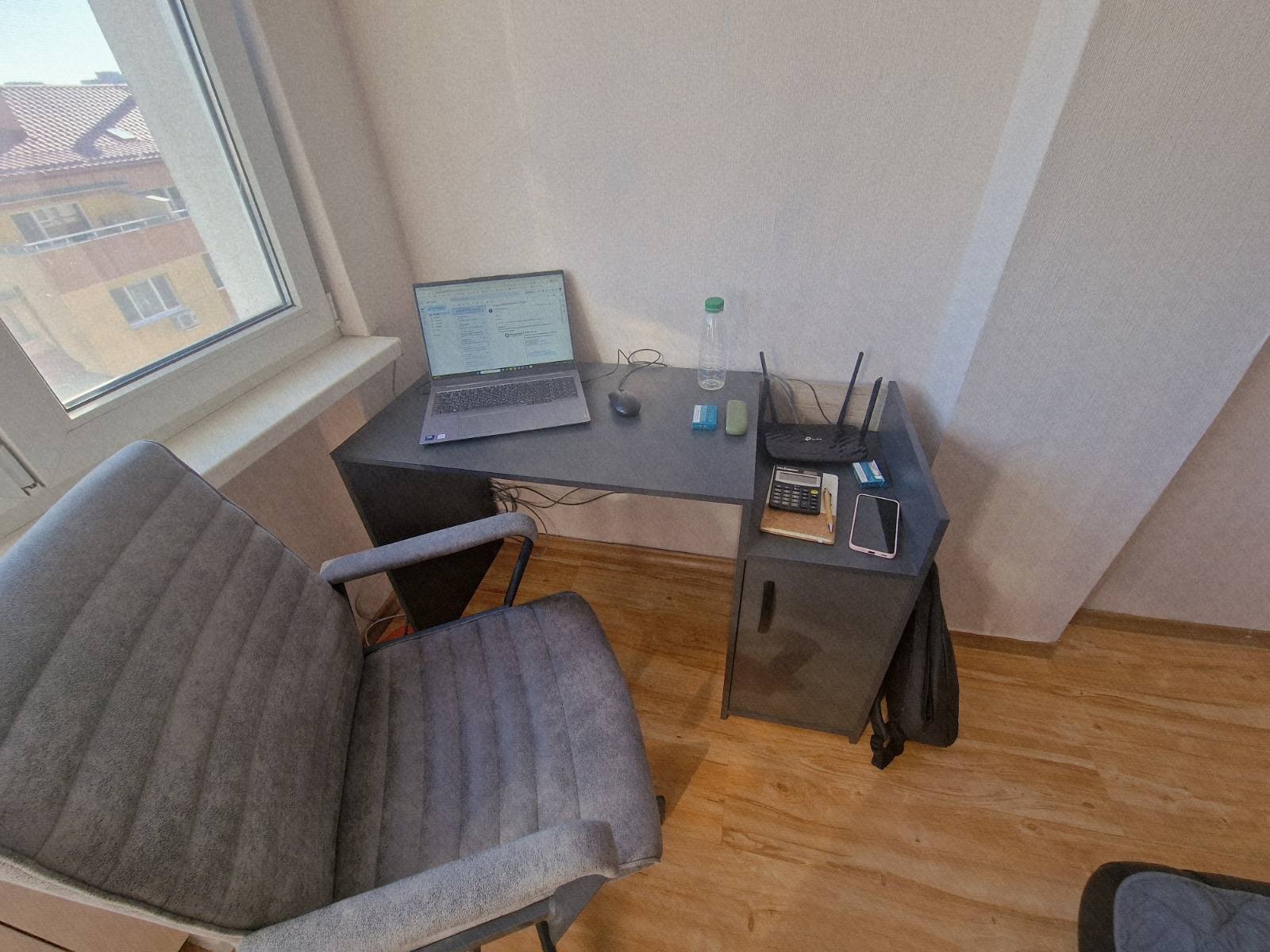 Тристаен апартамент: две спални, хол, кухня с усвоен балкон, два коридора, един балкон, баня и тоалетна, мокро помещение, дрешник. Има проточен бойлер за периода на годишната профилактика, ТЕЦ и един климатик.