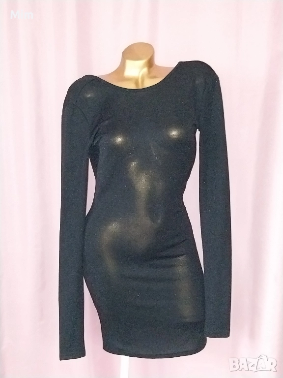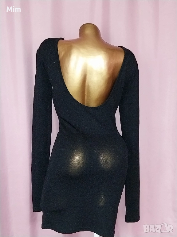 mbym S Черна еластична рокля с гол гръб с брокат → Обява 52475107