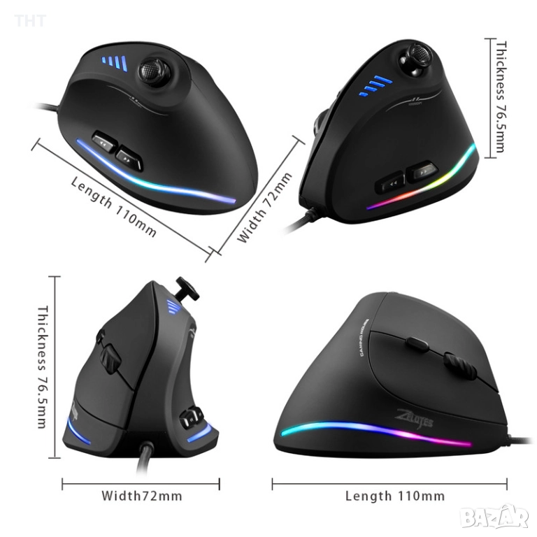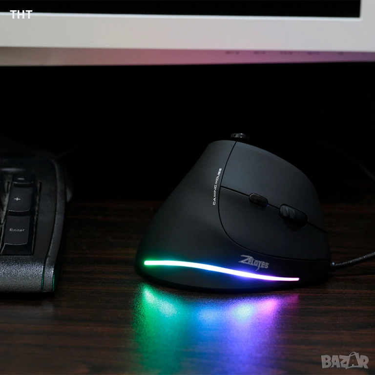 Продавам използвана геймърска мишка, в перфектно техническо състояние. Купена и ползвана около половин година. Чрез софтуера на Zelotes можете да си настроите RGB подсветката, както и да си програмирате бутоните. Захвата е много удобен, в сравнение с обикновените мишки. Причината, поради която се продава е, че си купих по-висок клас мишка. Има лека забележка от протриване, която съм снимал (не е нищо фрапиращо).