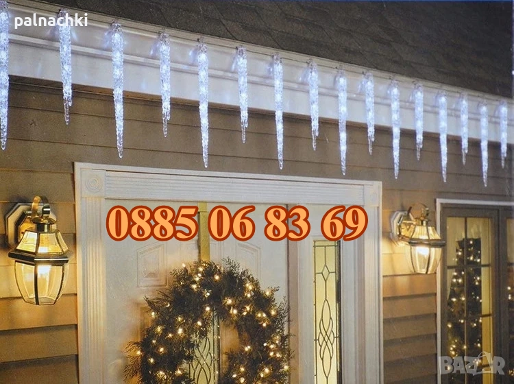 Висулки падащ сняг 50 см, бяла светлина, LED коледни висулки 8 бр. → Обява 52475336