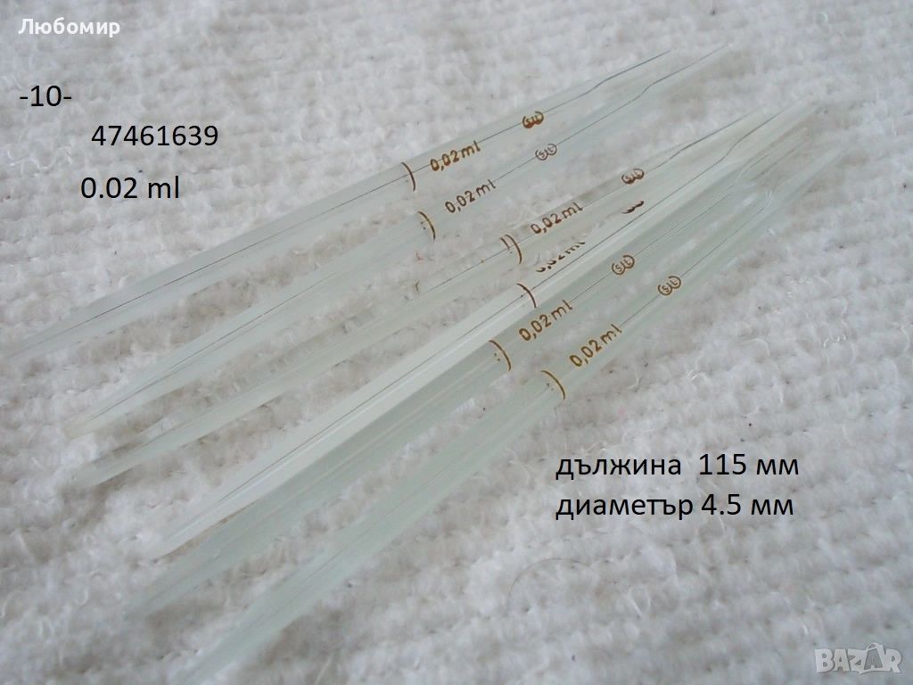 Стъклени микропипети - разни по списък.