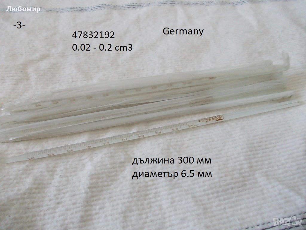 7. Пипета 0.01-0.1 см3 Germany - неизползвано - 10 бр. х 2 лв.