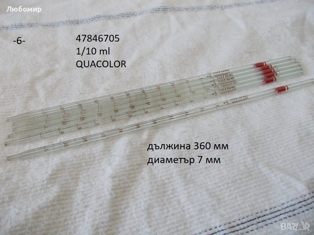 6. Пипета 1 in 1/10 ml QUACOLOR - неизползвано - 6 бр. х 2 лв.