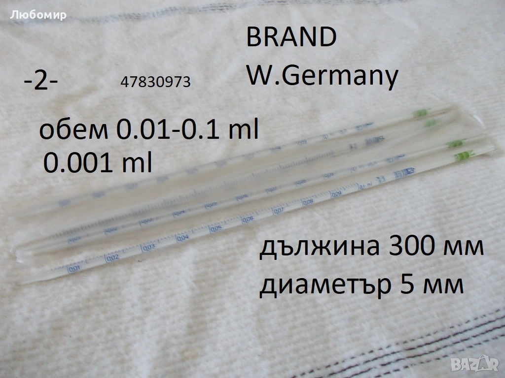 2. Пипета 0.01-0.1 ml Brand W.Germany - неизползвано - 8 бр. х 3 лв