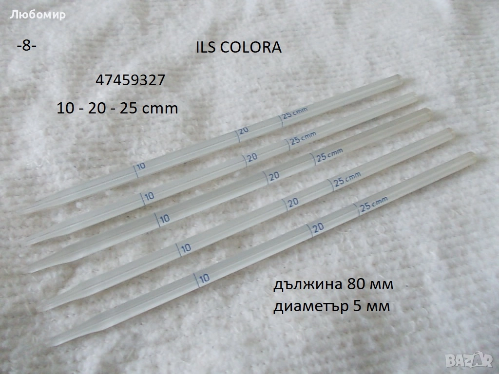 8. Пипета 10-20-25 cmm ILS COLORA - неизползвано - 5 бр. х 2 лв.
