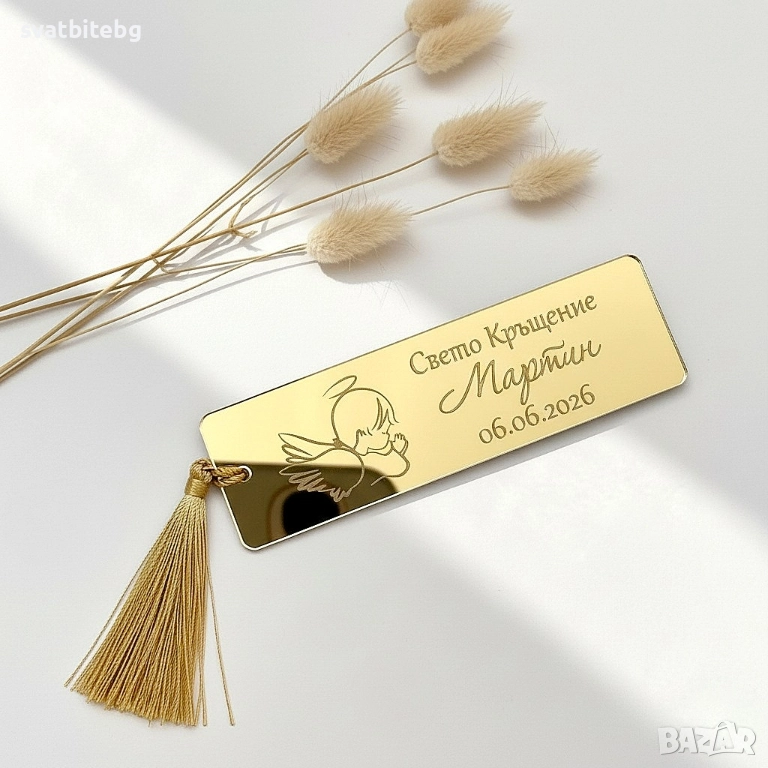 Персонализирани луксозни златни книгоразделители за кръщене, подаръчета за гости.