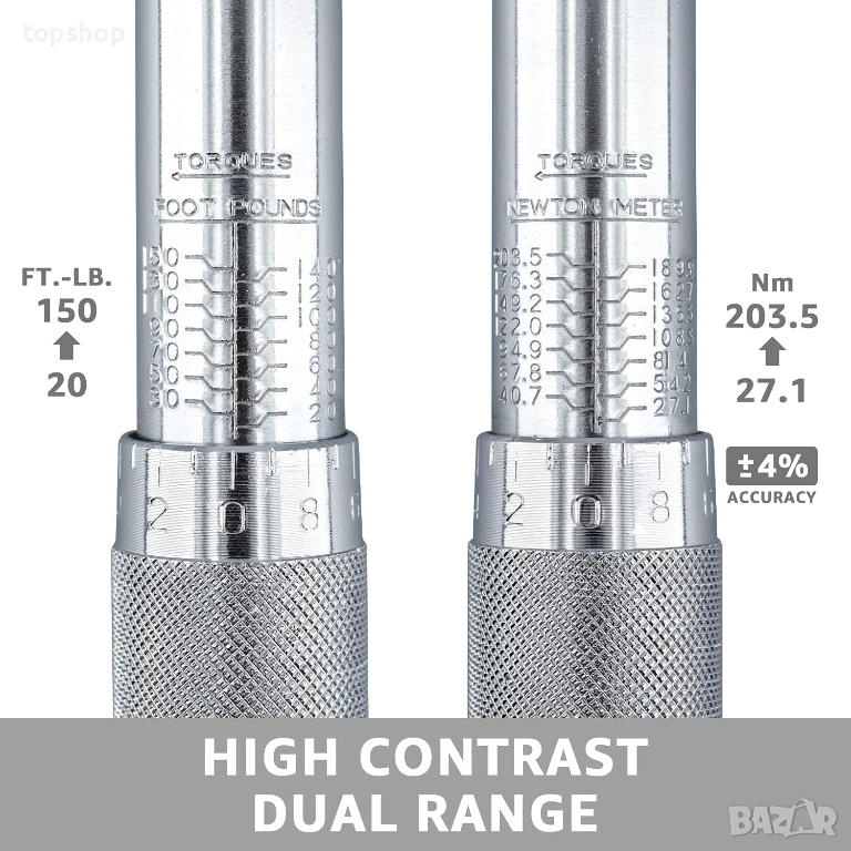 Нов динамометричен ключ 1/2-инчов Drive Click от Amazon Basics - 20-150 ft.-lb, 27.1-203.5 Nm ... → Обява 52475929