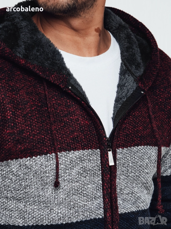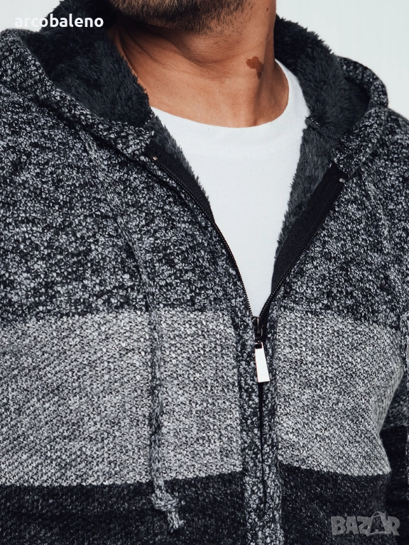 Този мек и стилен пуловер с качулка е перфектният избор за по-студените дни. Комбинация от комфорт и топлина, която ще ви държи топли при всякакви условия. Раираният модел добавя характер, а вътрешната подплата осигурява изключителен топлинен комфорт. Идеален за ежедневен стил.