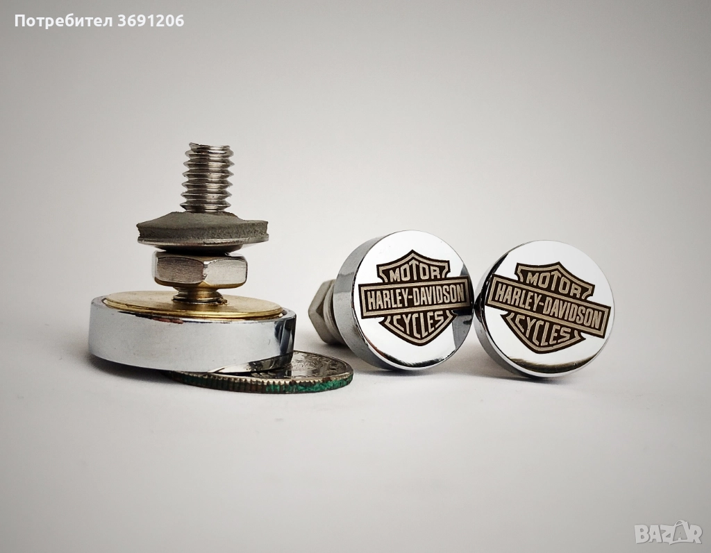 Продавам комплект: 1 дълбоко гравиран болт за седалка + 2 болта за регистрационен номер. Всички елементи са ръчно изработени, прецизни и уникални.
