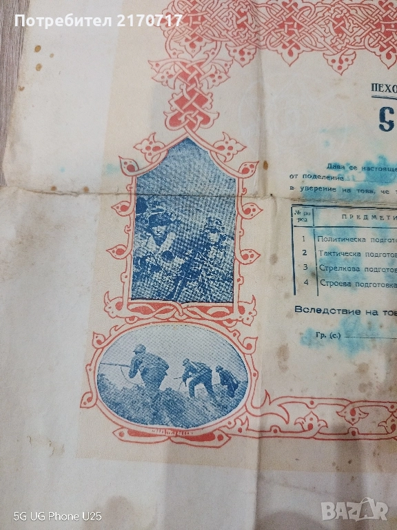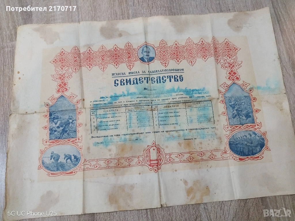 Свидетелство Пехотна школа за кандидат-подофицери . Изпращане с Еконт . Приемам и размяна , за други банкноти.