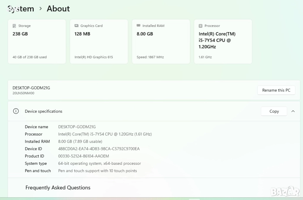Инсталиран Windows 11 PRO, оригинален към лаптопа
