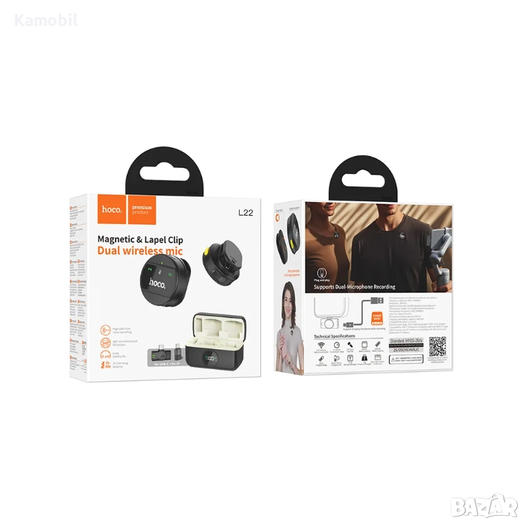 Безжичният микрофон Hoco L22 2-в-1 е комплект за запис с USB-C приемник и USB-C ® Lightning адаптер, който осигурява ясен звук благодарение на технологията за намаляване на шума ENC. Всепосочният електретен микрофон улавя глас от всички посоки, а калъфът за зареждане с капацитет 600 mAh удължава времето за работа до 5-6 часа.