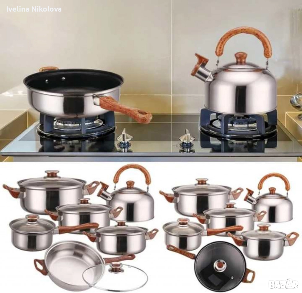 Кухненски комплект за готвене с охлаждащи дръжки, 12 части → Обява 52477246