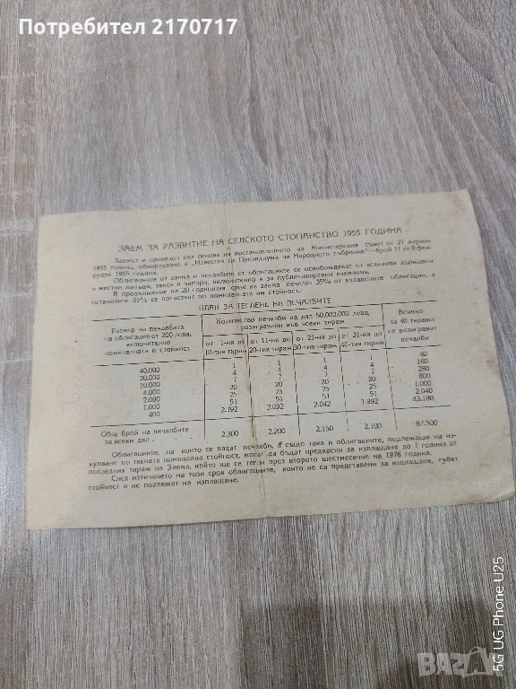 Продавам , разменям Облигация 20 лева 1955 година → Обява 52477442