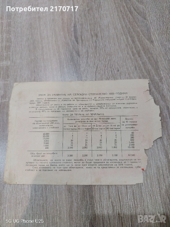 Продавам , разменям Облигация 40 лева 1955 година → Обява 52477489