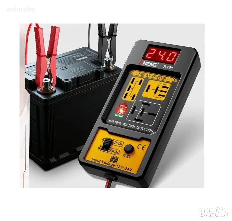 1) Закачете щипката тип „крокодил“ на тестера към акумулатора на автомобила - черната щипка на отрицателния електрод, а червената - на положителния.