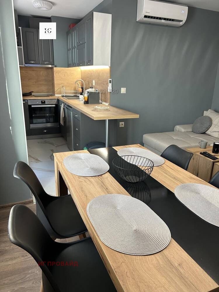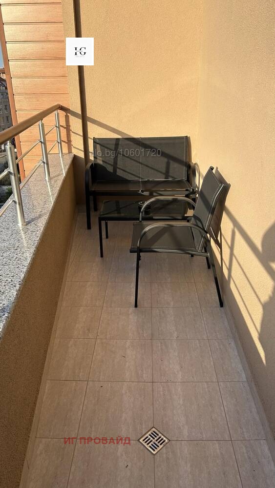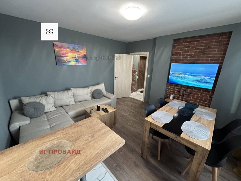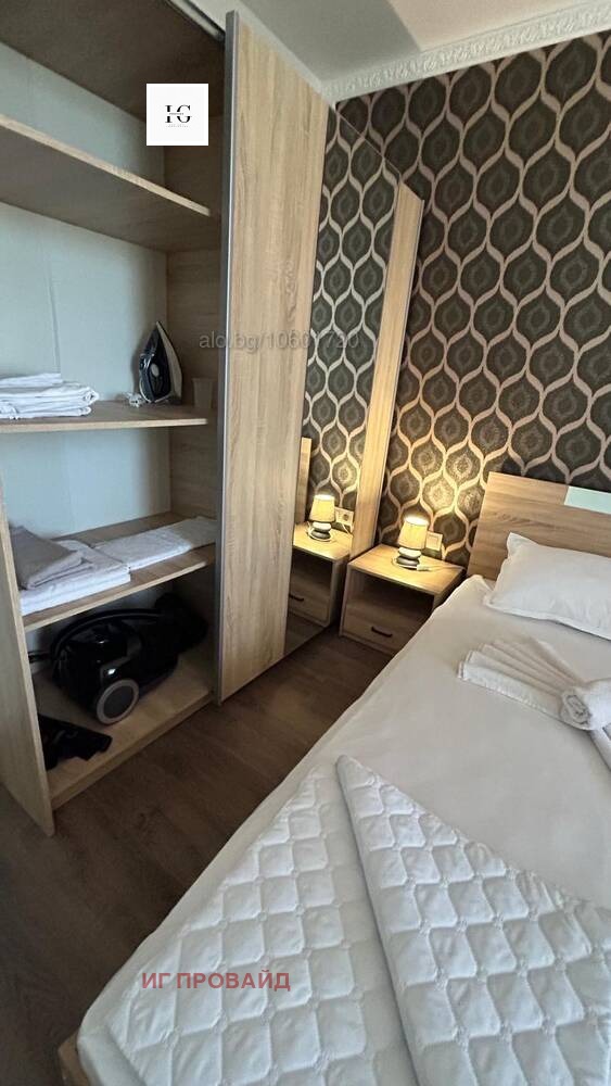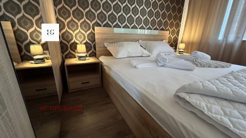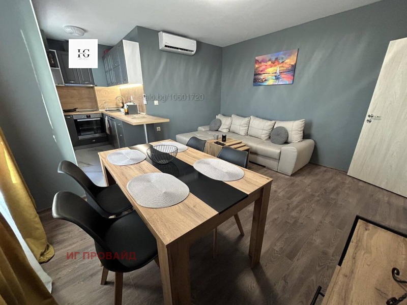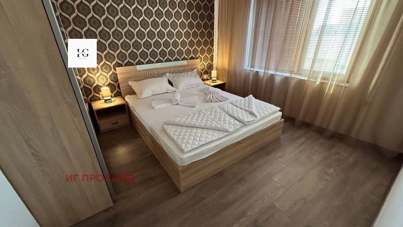 Стилно обзаведен и напълно оборудван двустаен апартамент, разположен на шестия последен етаж в модерна нова сграда, само на крачка от санаториума. Жилището се състои от комфортна спалня и просторен хол с кухненски бокс, снабден с хладилник, вградена фурна, котлони, абсорбатор, кафе машина с капсули, електрическа кана и пералня. В хола ще откриете разтегателен диван, климатик, телевизор, бърз интернет и маса за хранене с четири стола. Балконът предлага приятна морска гледка. Апартаментът е чисто нов и готов за настаняване. При интерес не се колебайте да се свържете с мен.