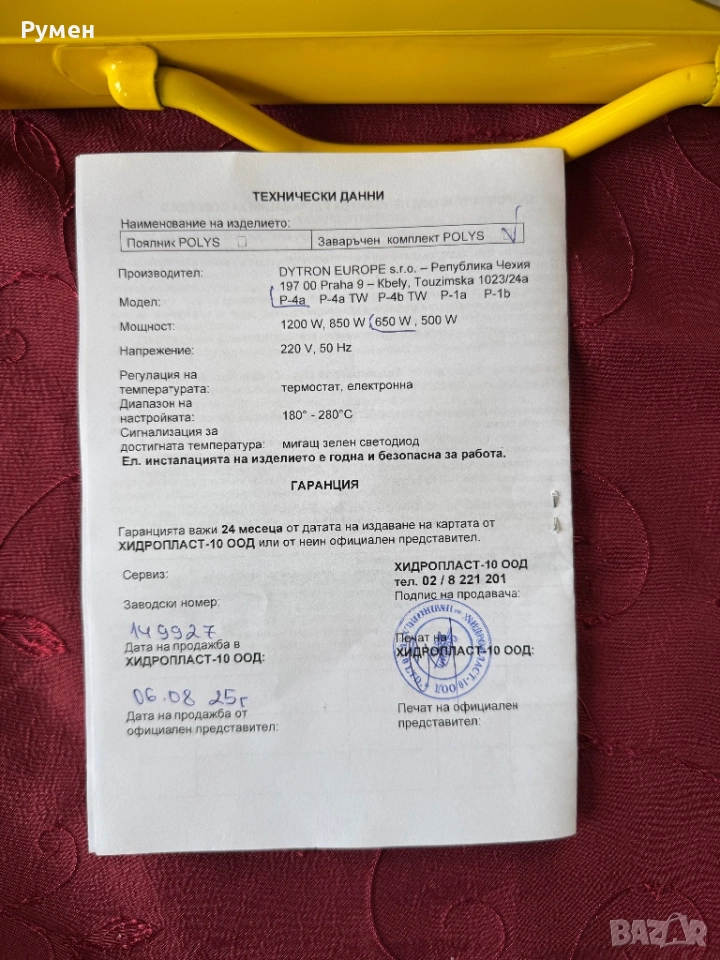 Заваръчен апарат за полипропилен DYTRON POLYS P-4a → Обява 52478198