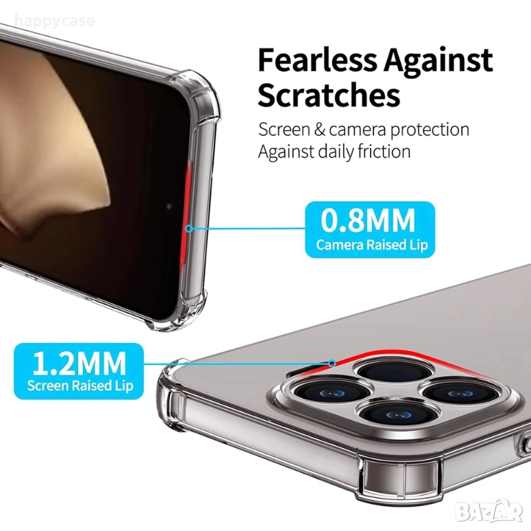 * Прозрачен, безцветен, изработен от мек TPU силикон