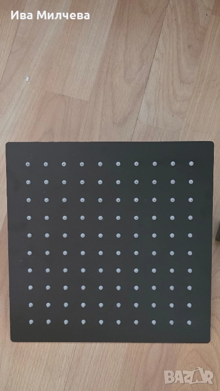 Модерна душ система с размер на душ пита 24.5 см./24.5 см. Комплектът включва душ глава, душ рамка и всички необходими аксесоари за лесен монтаж. За монтаж на 110 см. Чисто нов.