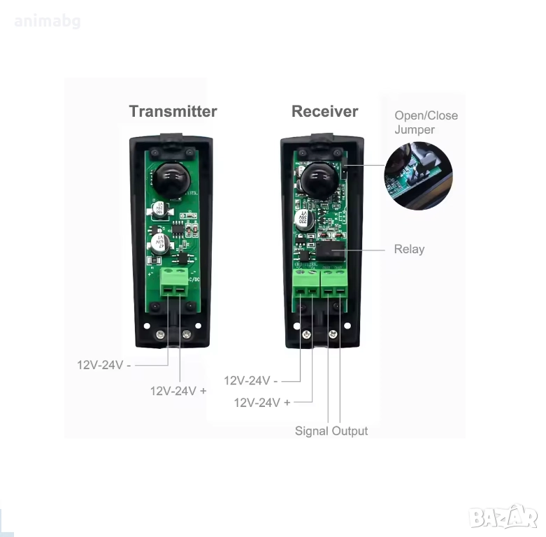 Инфрачервена честота: 1.92 Khz ЗАХРАНВАНЕ: 12 до 24 V DC/AC ДЪЛЖИНА НА ВЪЛНАТА: 940 nm ВХОД: RX 15 MA-TX 30 MA РАБОТНА ТЕМПЕРАТУРА: -10 C до 70 C РЕЛЕЕН ИЗХОД: 1 A макс. 36 V РАЗМЕРИ: 100 X 35 X 40 ММ