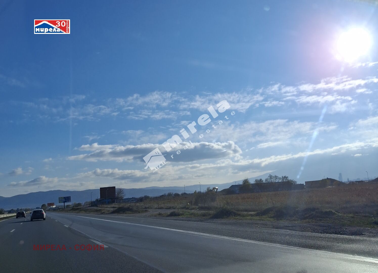 100445053 МИРЕЛА продава поземлен имот с лице на Околовръстен път, до бензиностанция Лукойл и представителния шоурум на Волво и Ленд Ровър, на около 300 метра от детелината на бул. Ботевградско шосе и от връзките със Северна скоростна тангента, АМ Тракия, АМ Хемус, Ам Европа и АМ Струма.
