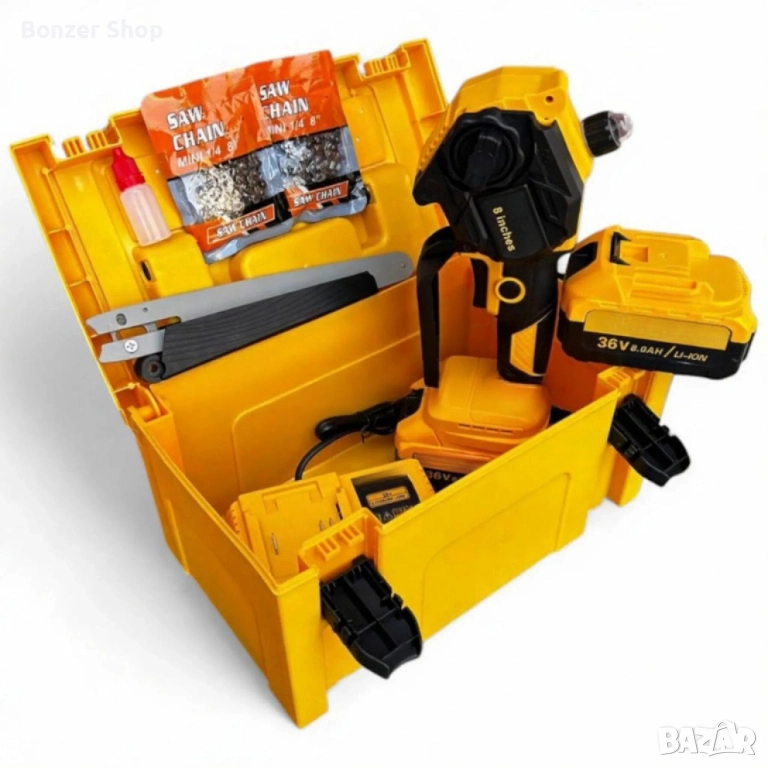 Акумулаторна Резачка 36V 8Ah с Шина 15 см – Трион с Автоматично Смазване и 2 Вериги → Обява 52478771