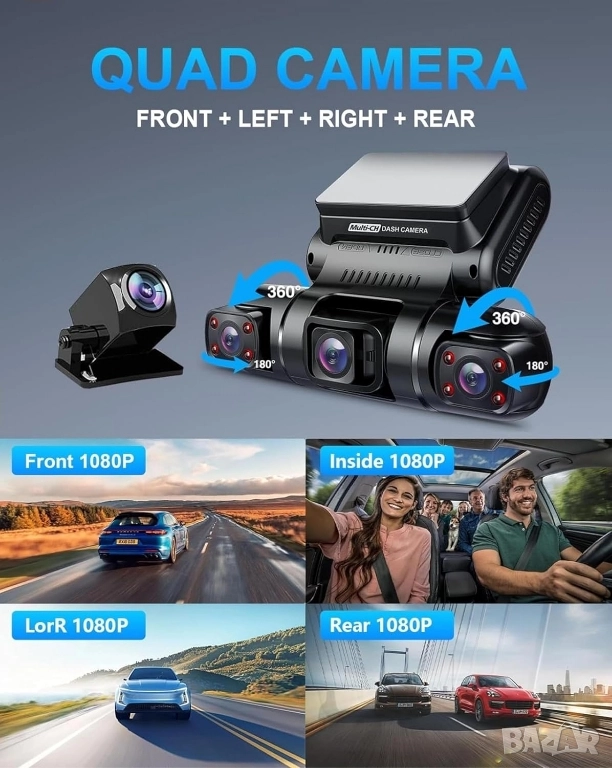 Разделителна способност Quad 1080P (Предна: 1920x1080P, Странични: 1920x1080P, Задна: 1920x1080P)