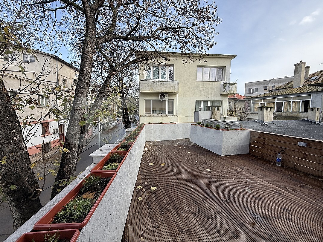 ТОПИММО предлага под наем цялостно реновирана и съвременно обновена къща с отлична локация в Гръцката махала, в непосредствена близост до всички ключови удобства. На едва няколко минути пеша е Морската градина, а наоколо са разположени училища, детски градини, плувен комплекс и централната пешеходна част на града.