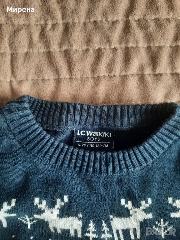 Памучен коледен пуловер за 6-7 годишно момче, без забележки → Обява 52479214