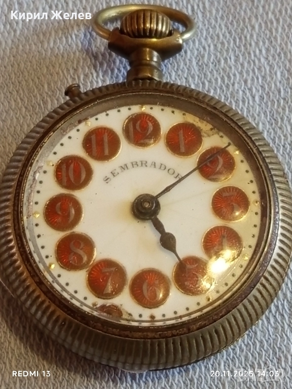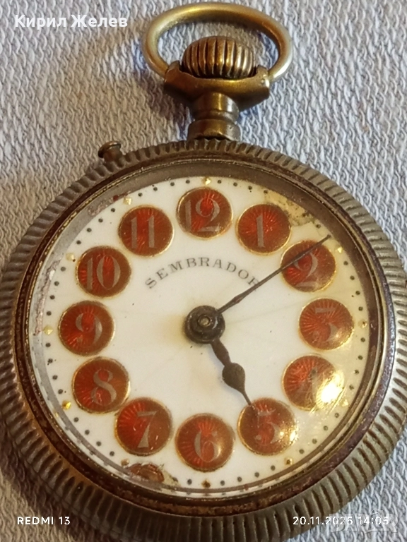 Стар джобен часовник SEMBRADOR рядък керамичен циферблат за КОЛЕКЦИЯ 52251