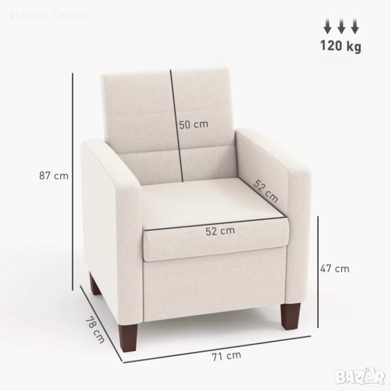 Здрава конструкция: Този тапициран фотьойл е изработен със здрава рамка от шперплат, което гарантира дълготрайна надеждност. Противоплъзгащите се крачета предпазват пода и подобряват стабилността на вашата покупка.