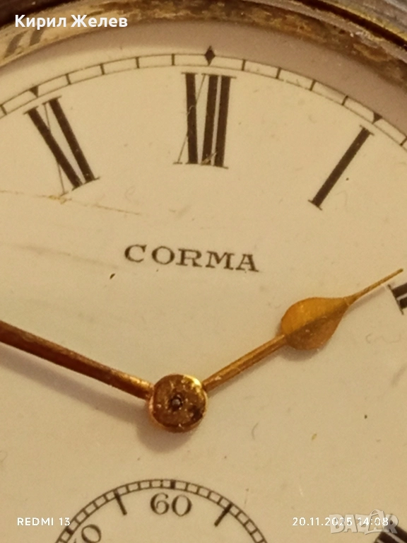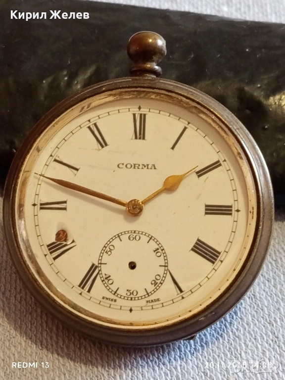 Стар джобен часовник CORMA SWISS MADE с керамичен циферблат рядък за КОЛЕКЦИЯ 52279