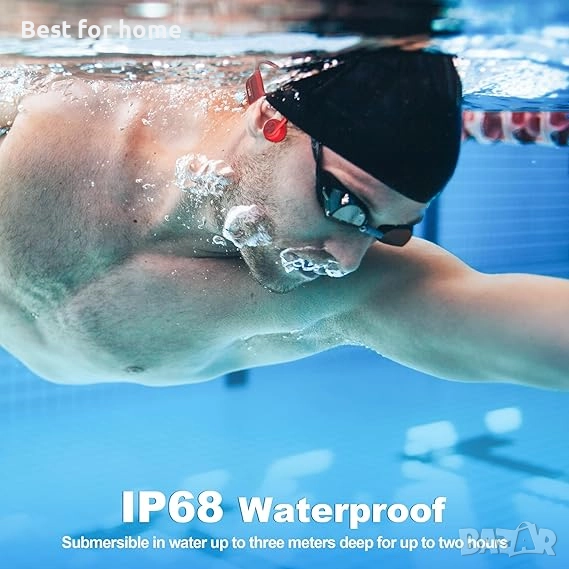 Слушалки Wantek с костна проводимост, Bluetooth слушалки с отворени уши и вграден 32GB MP3 плейър, водоустойчиви слушалки за плуване IP68, 8 часа време за възпроизвеждане за бягане, колоездене, фитнес, тренировка