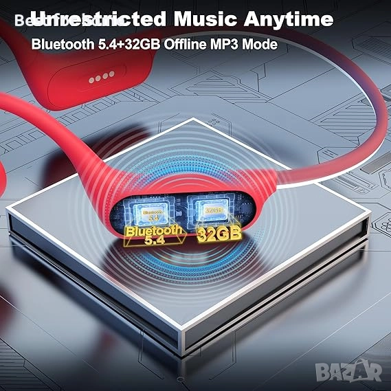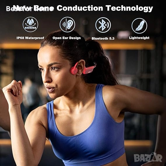 Слушалки Wantek с костна проводимост, Bluetooth слушалки с отворени уши и вграден 32GB MP3 плейър