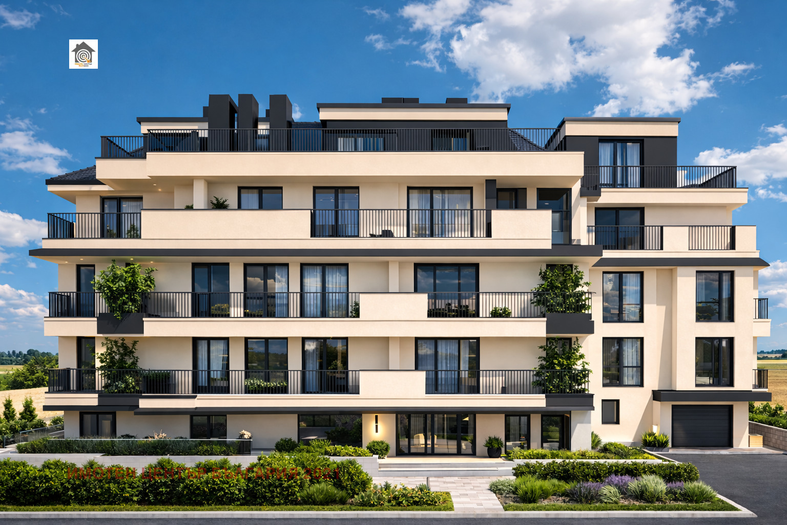 -Четири етажна сграда с подземни паркоместа и гаражи и богато озеленяване около нея; Луксозни общи части; Стълбища с технически камък; Тих хидравличен асансьор Комплектовани ОВ/ВиКи Електро инсталации; Пет камерна ПВЦ дограма Масивни входни врати,Изградени трасета за TV и интернет.
