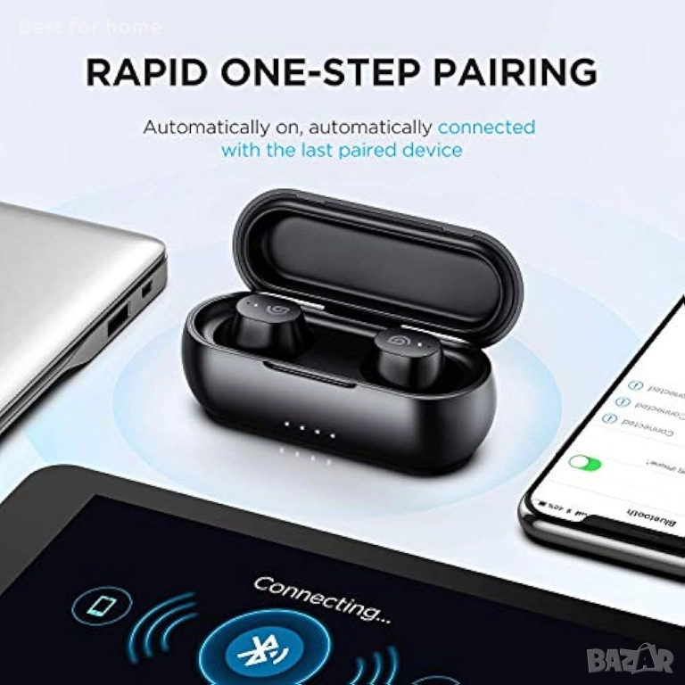 【30 часа изключително дълго време за възпроизвеждане и лесно сензорно управление】7 часа ултра дълго време за възпроизвеждане само с едно зареждане, общо 30 часа време за възпроизвеждане със зареждащ калъф, идеално за носене в движение. Бързо зареждане чрез Type-C, 10 минути зареждане за един час употреба. Сензори за сензорно управление, които могат значително да намалят натиска върху ухото, когато докосвате бутоните за различни функции.