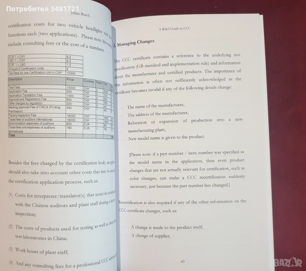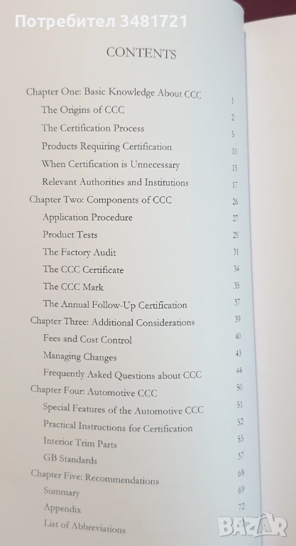 Краткото ръководство по CCC представя изискванията при задължителната сертификация в Китай - задължителната система за сертифициране на Китайската народна република за продукти, внасяни или произведени в страната. Книгата описва системата за сертифициране, от одити до тестове на продукти и опции за печат, до сертифициращи органи и съответните разпоредби. Тя предоставя информация за това как да се ориентирате в системата и да се подготвите адекватно за процеса на сертифициране. „Кратко ръководство за CCC“ включва глава, посветена единствено на автомобилната индустрия, с практически предложения и полезни съвети.