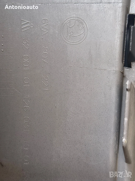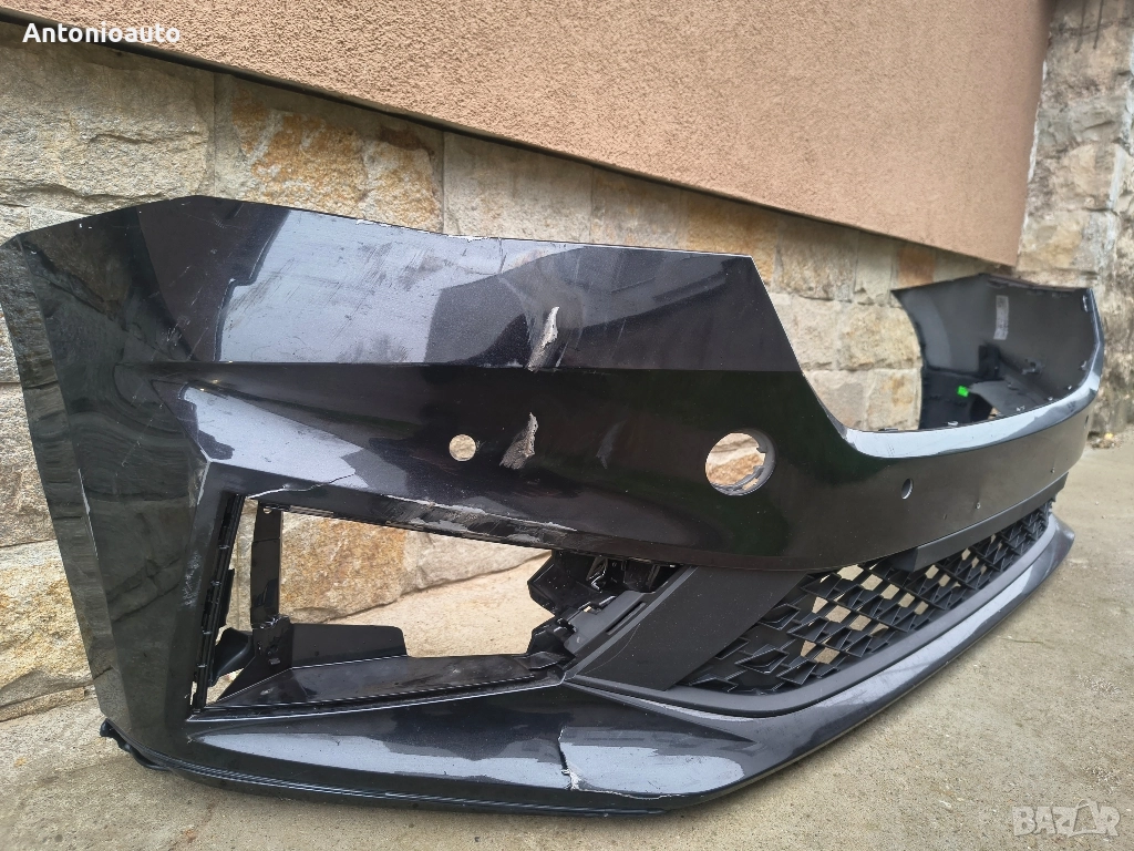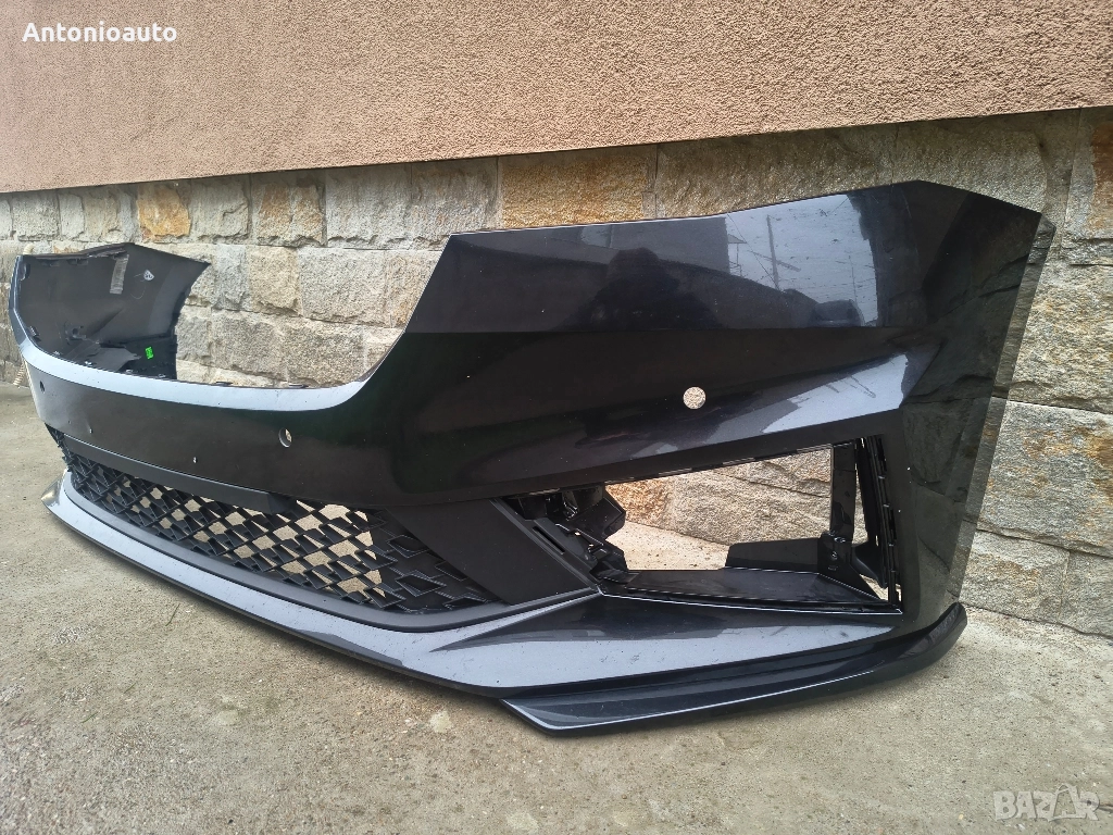 Предна броня Шкода Фабия 4 / Skoda Fabia 4 Оригинална, в добро състояние. Оригинален номер на артикула 6VA807221. бронята има две забележки, леки спуквания, няма липсващи парченца, само трябва да се прилепи, виждате на снимките. По бронята няма счупени захвати. В цената е включена и решетката, която е в перфектно състояние, без никакви спуквания!
