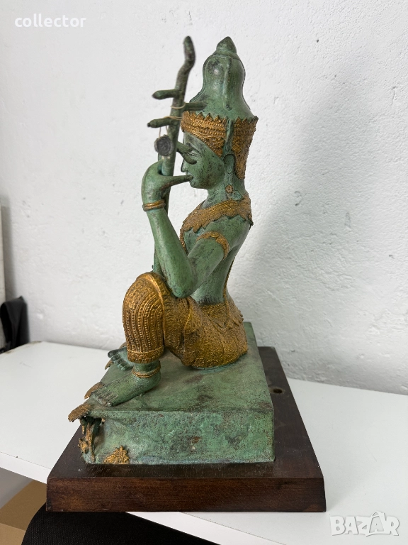 Tайландска бронзова статуетка на музикант с позлата. №7626 → Обява 52480170