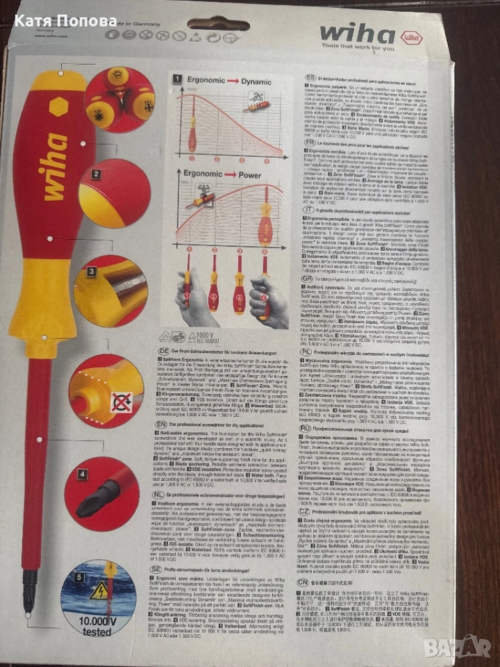 Wiha Softfinish electric коплект шестостенен ключ/отвертка ,5 части , перфектни за работа при 10000V променлив ток , нови , внос от Германия