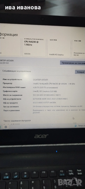 Лаптоп acer aspire ES1-533 , снимка 1 - Лаптопи за дома - 52480376 Лаптоп acer aspire ES1-533 , снимка 2 - Лаптопи за дома - 52480376 Лаптоп acer aspire ES1-533 , снимка 3 - Лаптопи за дома - 52480376 Лаптоп acer aspire ES1-533 , снимка 4 - Лаптопи за дома - 52480376 1/4